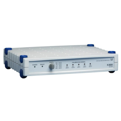 Jednostka została zaprojektowana z myślą o modułowości – metalowe obudowy są układane jedna na drugiej, co pozwala zaoszczędzić miejsce przy montażu wielu kalibracyjnych jednostek. Każdy K800 jest wyposażony w certyfikat DKD (German Calibration Service), co gwarantuje powiązanie pomiarów z krajowymi standardami. Do urządzenia dołączone są kable umożliwiające konfigurację układów 3- lub 4-drutowych, co pozwala na bezpośrednie podłączenie do mostkowych wzmacniaczy AP814 i AP815 firmy HBM używanych w połączeniu z modułem bazowym ML801.